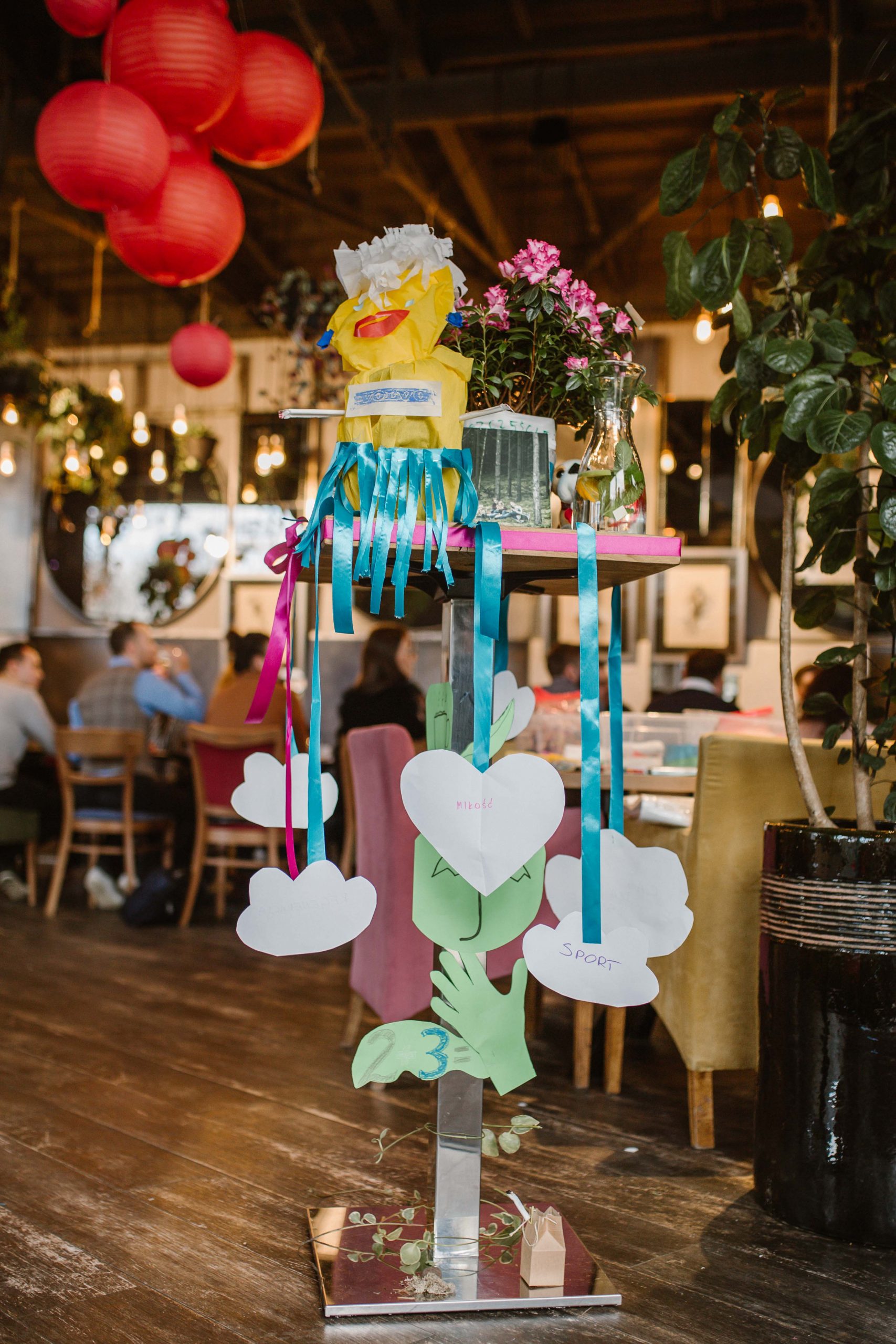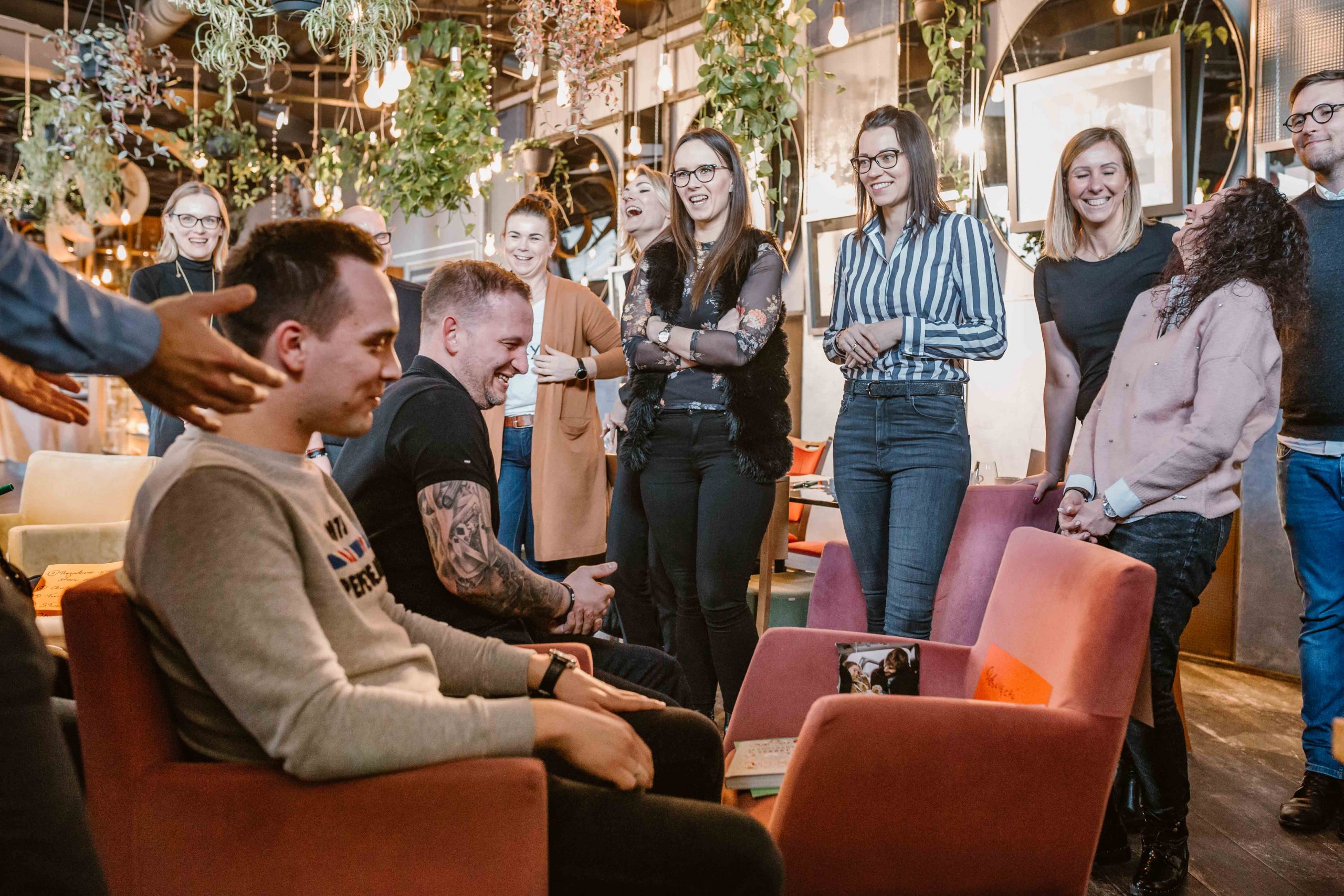 W drugiej części warsztatów pracowaliśmy w mniejszych zespołach tworząc instalacje dotyczące wartości. Podczas naszych działań Restauracja Sarbinowska przemieniła się w galerię sztuki, w której pojawiły się niezwykłe dzieła – uczestnicy dali upust swojej pomysłowości, zaskakując siebie nawzajem i nas wspaniałą wyobraźnią. Część kreatywna warsztatów, uruchamiająca potencjał twórczy pracowników, pozwoliła przełamać schematy w myśleniu, odkryć artystyczne talenty w zespole i była czasem świetnej zabawy. Na zakończenie odbył się wernisaż, podczas którego uczestnicy opowiadali o swoich instalacjach, dzieląc się z uśmiechem refleksjami dotyczącymi wartości. Zaproszenie pracowników do wspólnego działania sprawiło, że stali się oni współtwórcami nie tylko instalacji, ale też całego spotkania. Rozmowy o tym, co najważniejsze nie zakończyły się wraz z końcem warsztatów, lecz trwały jeszcze podczas lunchu. Mamy nadzieję, że zainicjowane podczas spotkania dyskusje towarzyszą uczestnikom w codziennej pracy i pomagają troszczyć się o siebie nawzajem.