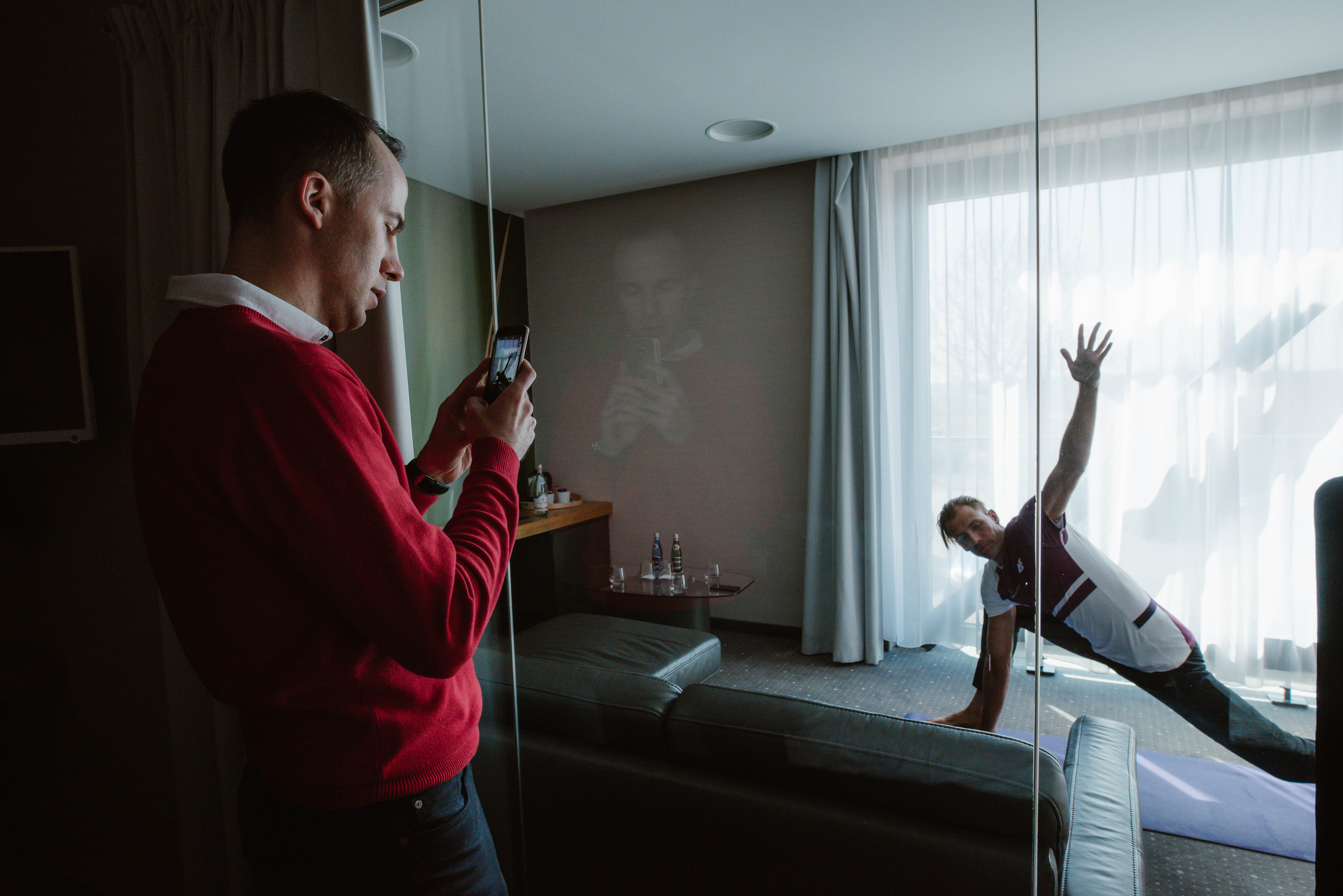 Budzę się zazwyczaj między 6:30 a 7:00. Dzień zaczynam od wypicia wody, zwykle od pół do jednego litra. Zanim położę się spać, przygotowuję butelkę wody, która o poranku ma mnie pobudzić do działania. Kolejnym etapem jest aktywność fizyczna. Forma ruchu, na jaką danego dnia się zdecyduję zależy od miejsca, w którym przebywam: raz jest to trucht, innym razem joga, a gdy mam taką możliwość korzystam z hotelowego basenu. Mój poranny rozruch nie jest precyzyjnie określony, zależy mi na rozgrzaniu mięśni, zwykle poświęcam na taką aktywność około pół godziny. Później tylko szybka kąpiel i wybieram się na śniadanie.
